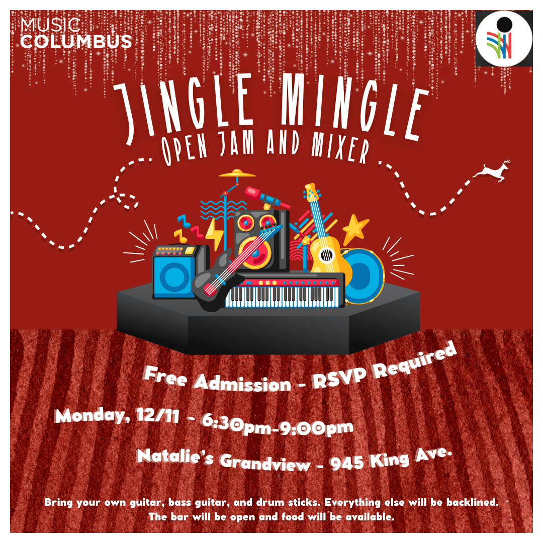 Music Columbus presents Jingle Mingle Open Jam and Mixer in collaboration with Teamball Collective. Join in on the fun and enjoy some delicious food and drinks at Natalie's Grandview to celebrate the holiday season. RSVP is required to attend! Doors will be at 6:30 with jams beginning at 7pm. Jam sign ups will function on a first…